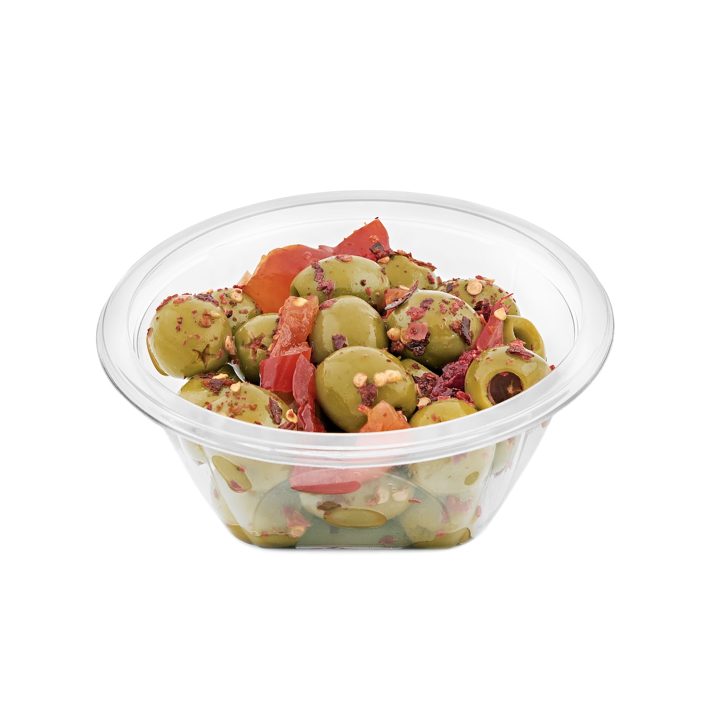 Αυτές οι λαχταριστές μαριναρισμένες ελιές συσκευάζονται σε μια εύχρηστη, χωρίς άλμη συσκευασία με μοναδικό σκοπό να φέρουν την αληθινή γεύση της μεσογείου κοντά σας!